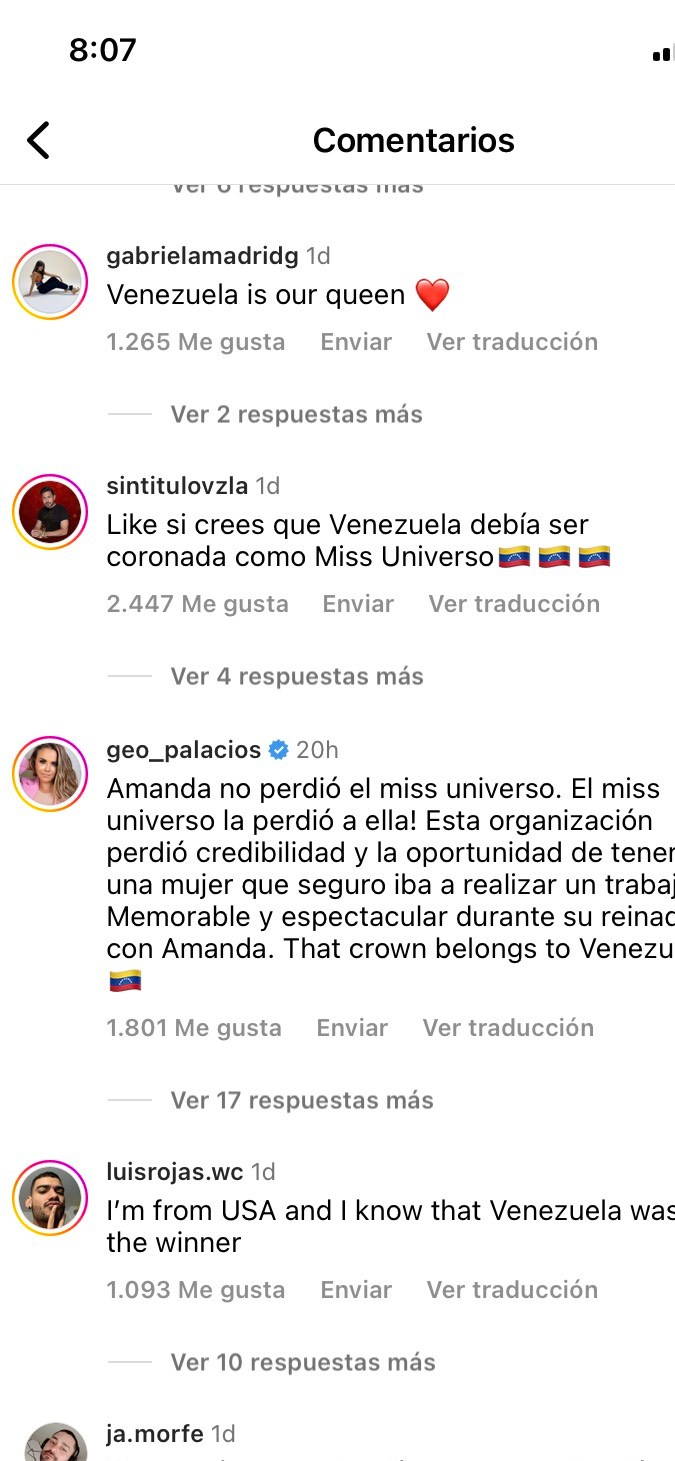 Incluso, los encargados de la cuenta de Instagram de la organización Miss Universo tuvieron que bloquear los comentarios de las publicaciones porque muchos estaban comentando que hubo fraude en el resultado.