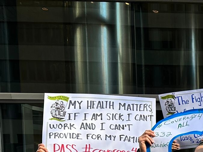 “Yo he sufrido de diabetes durante mucho tiempo, sin embargo, debido a que no tengo acceso a un seguro médico y al alto costo de los medicamentos, no he podido comenzar mi tratamiento. Esto hace que mi enfermedad progrese y ponga en riesgo la integridad de mi salud en general”, dijo Dolores, en medio de carteles donde se leían frases como “Hochul ama a los inmigrantes” y “Hochul no juegues con mi salud“. “Exijo que la Gobernadora actualice su solicitud de exención para incluir a personas como yo, y que la Legislatura estatal apruebe Cobertura para todos”.