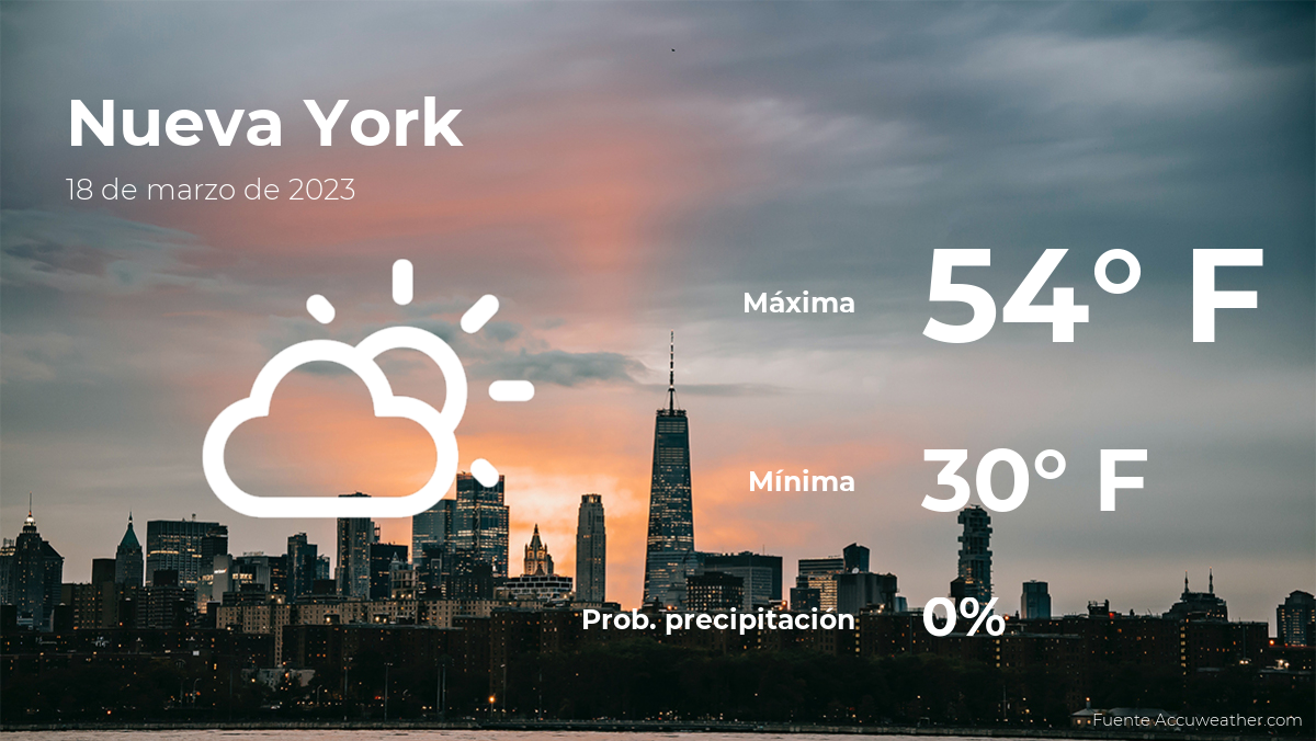 Clima de hoy en Nueva York para este sábado 18 de marzo