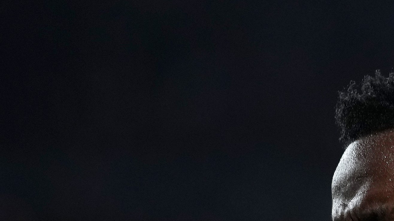 Vinícius al oír los insultos respondió mirando a la grada y tocándose el parche de campeones del mundo que lleva en la franela del Real Madrid.