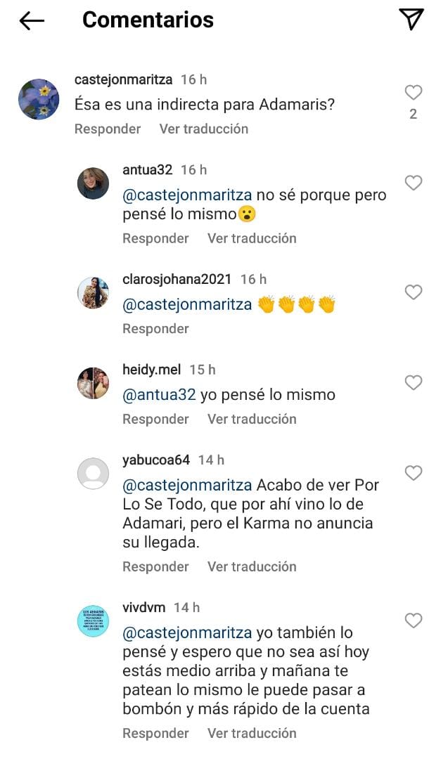 “¿Esa es una indirecta para Adamari?”, dice el primer comentario y varias personas no dudaron en manifestar lo que pensaron al leer el texto de la dominicana.