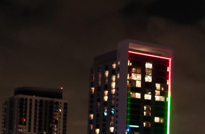 El edificio Paramount Miami Worldcenter, situado frente a la bahía de Vizcaya, en el centro de Miami, y muy cerca del Kaseya Center, donde el Heat recibirá a los Celtics el domingo de esta semana, cuenta en su fachada principal con el sistema de iluminación Color Kinetics más avanzado tecnológicamente del mundo.