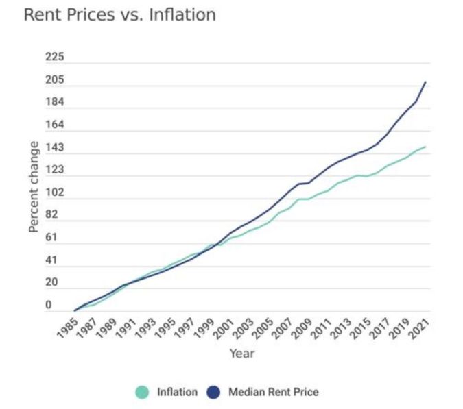 Una nueva investigación de Real Estate Witch, la empresa inmobiliaria propiedad de Clever Real Estate, muestra que los precios de alquiler han aumentado un 208% desde 1985, de $378 al mes a $1,163 dólares, superando la inflación en un 40% y los ingresos en un 7%.