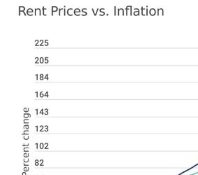 Los precios de alquiler de vivienda han superado el crecimiento de los ingresos en 46 de las 50 áreas metropolitanas más pobladas de EE.UU.; si crecieran al mismo ritmo que la inflación desde 1985, el alquiler medio sería un 19% más bajo: $939 al mes en lugar de $1,163 dólares