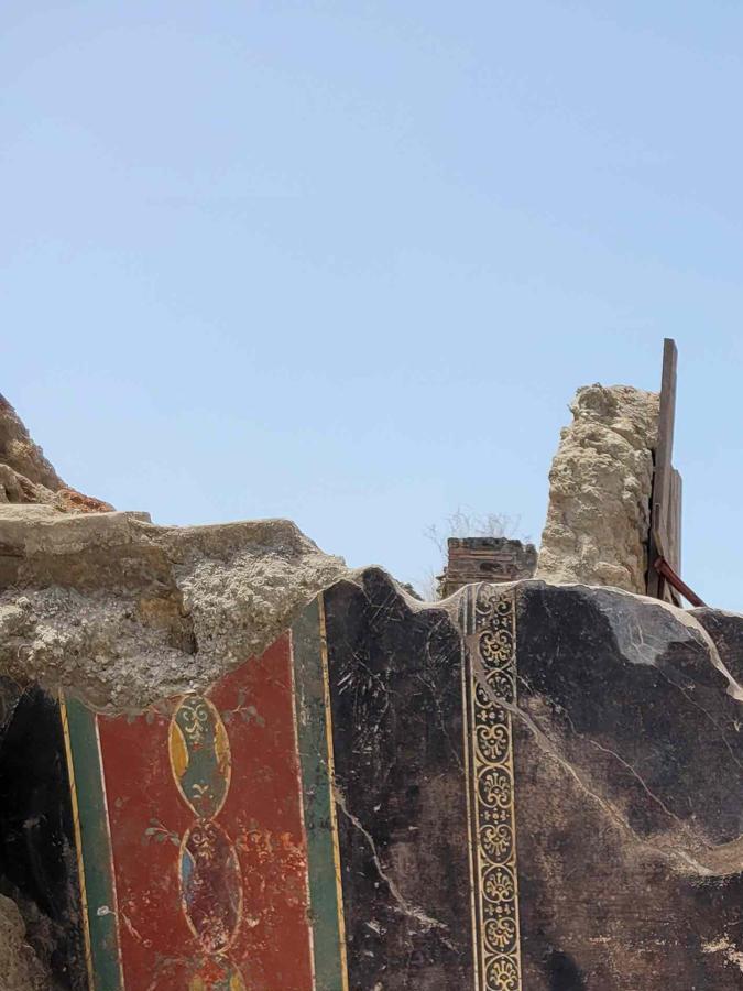 El fresco fue encontrado en el atrio de una casa en la Insula 10 de Regio IX, que tiene una panadería anexa, ya explorada parcialmente entre 1888 y 1891 y cuyas investigaciones se reanudaron en enero pasado.