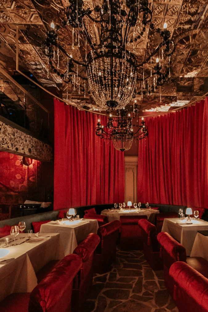 Diseñado por el arquitecto y diseñador de interiores español Ignacio García de Vinuesa, el local, con capacidad para 166 personas, presenta un estilo rococó con muebles de terciopelo de los años 50 hechos a medida, cortinas de terciopelo rojo, arañas de cristal negro colgantes, un piano de cola blanco de época y suelos de terrazo. Cada detalle del restaurante y su cabaret cuenta una historia sobre el patrimonio cultural de Cuba.
