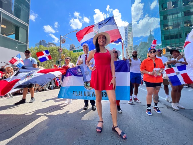“Mientras nos dan paso para entrar al desfile, nos divertimos aquí. Ya tú sabes que los dominicanos armamos fiesta donde sea, y hoy es nuestro día no solo para sentirnos orgullosos de lo que somos sino para bailar y gozar hasta que se oscurezca”, comentó el joven dominicano Alexis de los Santos.