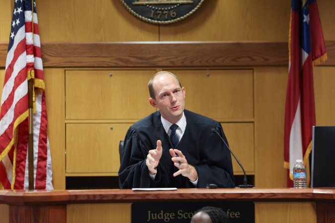 El juez del Tribunal Superior Scott McAfee escucha las mociones de los abogados que representan a Ken Chesebro y Sidney Powell el pasado 6 de septiembre de 2023 en el juzgado del condado de Fulton en Atlanta, Georgia. (Foto: Jason Getz / Pool / Getty Images)