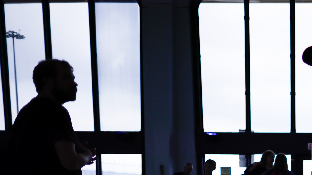 La rubia de las dos mujeres estalla en llanto en una silla en la terminal, y la otra parece consolarla con la promesa de que llegarán a Irlanda.