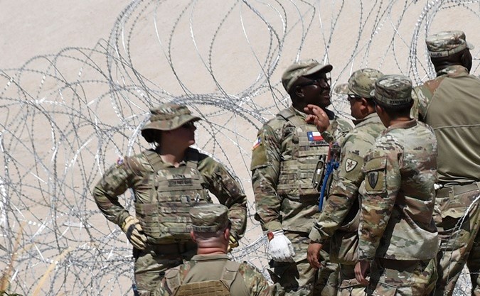 Agentes de la Guardia Nacional de Estados Unidos destruyeron este martes un campamento que decenas de migrantes habían instalado entre el muro y la concertina en la frontera con México.
