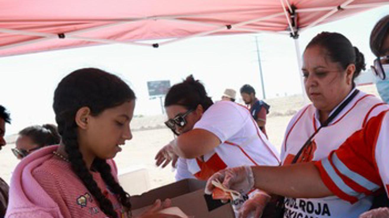 Cruz Roja donó agua y alimentos para casi 300 migrantes en la frontera entre Estados Unidos y México