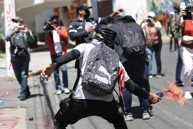Los estudiantes vandalizaron las instalaciones realizando pintadas en los muros y lanzando cócteles molotov. Crédito: Sáshenka Gutiérrez | EFE
