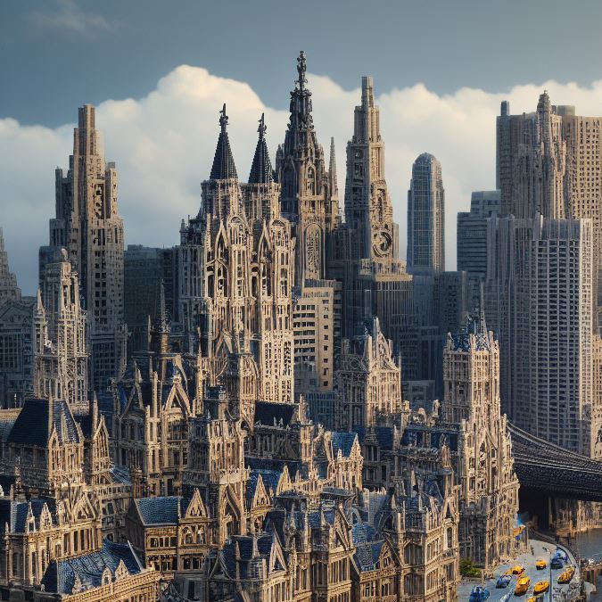 Ahora, aprovecharemos el mismo poder de la IA para evocar una visión de Nueva York tal como podría haber aparecido en la época medieval, satisfaciendo nuestra curiosidad con un vistazo al pasado.