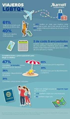 Marriott International publicó los resultados de su última investigación sobre las actitudes, comportamientos y preferencias de la comunidad LGBTQ+ a la hora de viajar. El estudio, realizado en línea entre agosto y septiembre de 2023, tomó como muestra a adultos que se identificaron como parte de la comunidad LGBTQ+, así como a la población general en 5 mercados del Caribe y Latinoamérica.