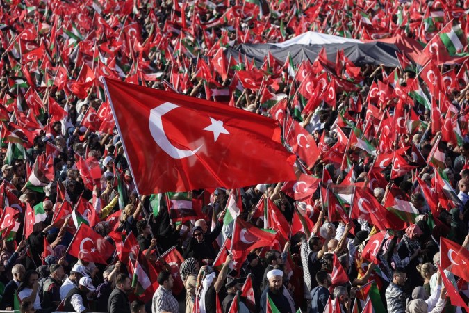 Subrayó la independencia y grandeza de Turquía como heredera del Imperio otomano, al que habían pertenecido, recordó, no solo Siria y los Balcanes, sino también Gaza.
