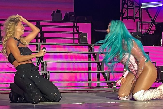La colombiana Karol G junto a Anahí en un concierto. Crédito: Mezcalent