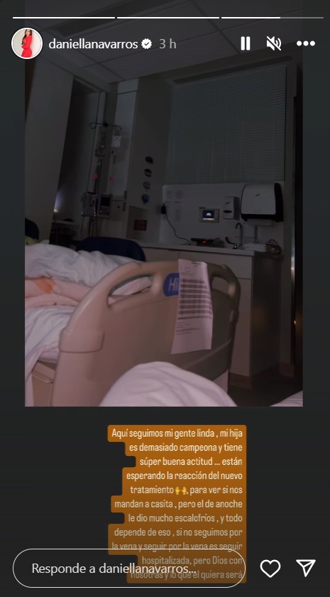 “Aquí seguimos mi gente linda, mi hija es demasiado campeona y tiene superbuena actitud… están esperando la reacción del nuevo tratamiento para ver si nos mandan a casita, pero el de anoche le dio mucho escalofríos y todo depende de eso, si no seguimos por la vena y seguir por la vena es seguir hospitalizada, pero Dios con nosotras y lo que él quiera que sea“, escribió este viernes la exparticipante de ‘La Casa de los Famosos’.