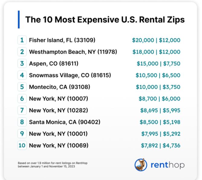 Los códigos postales de alquiler más caros en 2023 en los Estados Unidos, según RentHop