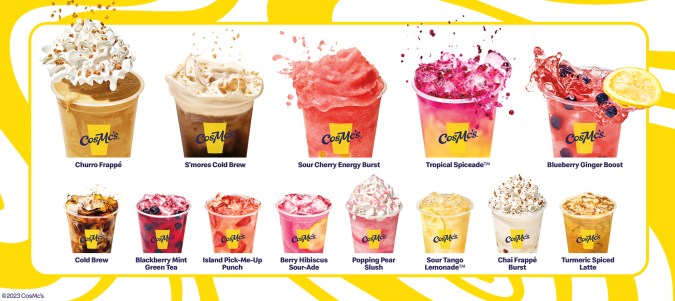 El menú de CosMc’s se basa en bebidas con combinaciones de sabores que buscan ser inesperadas. Las bebidas se caracterizan por tener colores vibrantes.