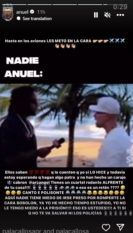 “Ahhh vamos pal’ estudio mañana otra vez!, déjame sacar el Anastazios special a ver si es verdad (…) El OG tiene sus papeles ready en mano pa’ enseñártelos!!, otro ejemplo más de que tu lengua y tu boca son tus peores enemigos. Ves porque te digo que eres un tipo bruto, cabr*n”, escribió en las redes sociales.