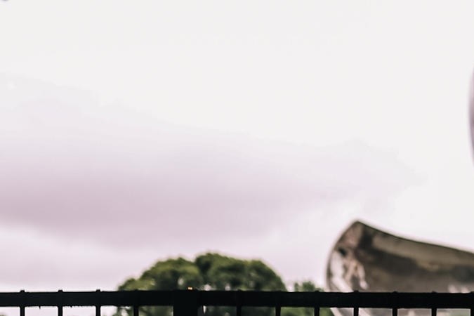 Un hombre con un coche pasa frente a la escultura Floralis que fue afectada por un temporal en Buenos Aires. Foto: EFE/ Juan Ignacio Roncoroni