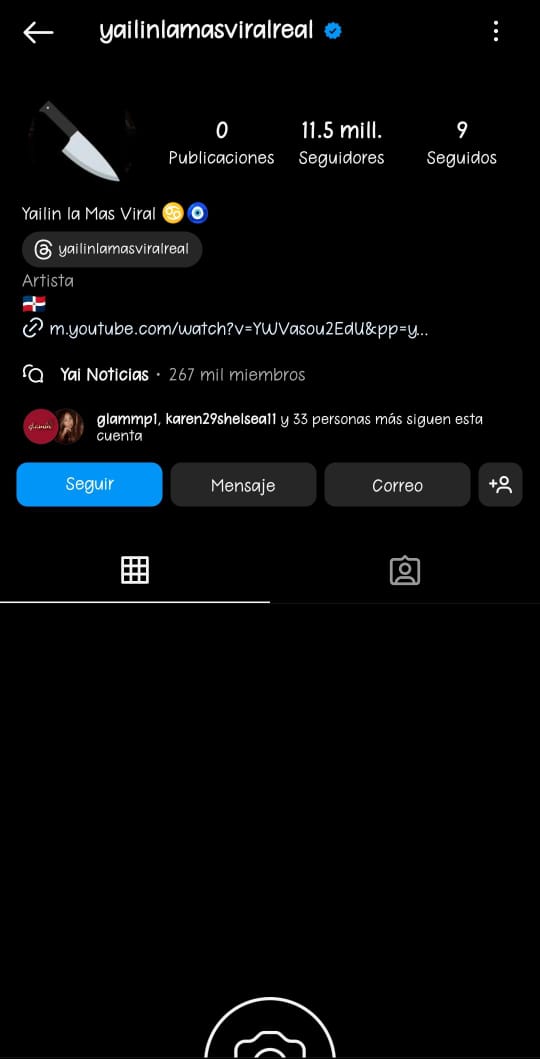En la imagen se puede apreciar un fondo completamente negro acompañado de un cuchillo, mientras que todas sus publicaciones fueron archivadas, tomando en consideración que continúa con más de 11 millones de seguidores en la plataforma.