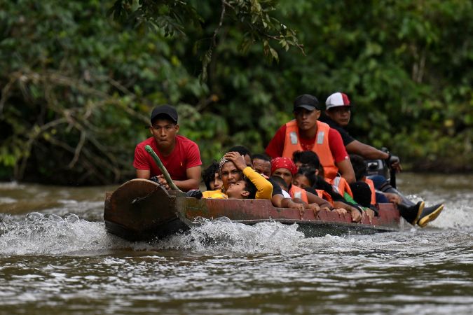 Los migrantes que cruzan el Darién llegan primero a Bajo Chiquito, donde son registrados por las autoridades y pasan una noche. Al día siguiente, deben tomar unas canoas que ellos mismos pagan y navegar por el río Tuquesa hasta uno de los dos albergues que hay en el Darién.