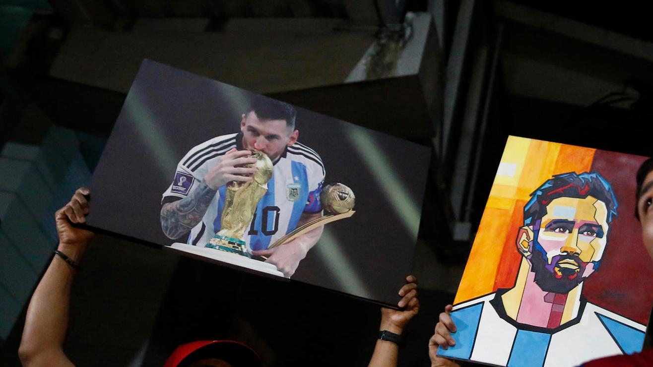 Aficionados salvadoreños esperaron la madrugada de este viernes la llegada del argentino Lionel Messi. Crédito: Rodrigo Sura | EFE