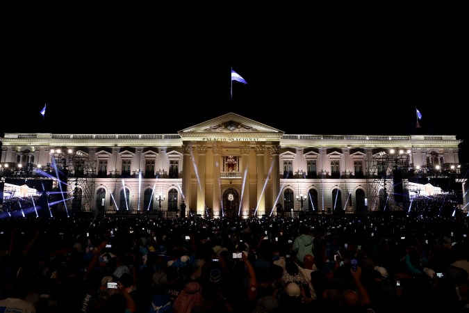Nayib Bukele ofreció el domingo un eufórico discurso frente a una multitud que asistió a los alrededores del Palacio Nacional luego de que resultó electo presidente de El Salvador, según los resultados preliminares publicados por el Tribunal Supremo Electoral. El líder del partido Nuevas Ideas aseguró, acompañado de su esposa Gabriela Rodríguez de Bukele, que obtuvo más de 85% de los votos, lo que calificó como un récord de expresión democrática en toda la historia de su país y el mundo.
