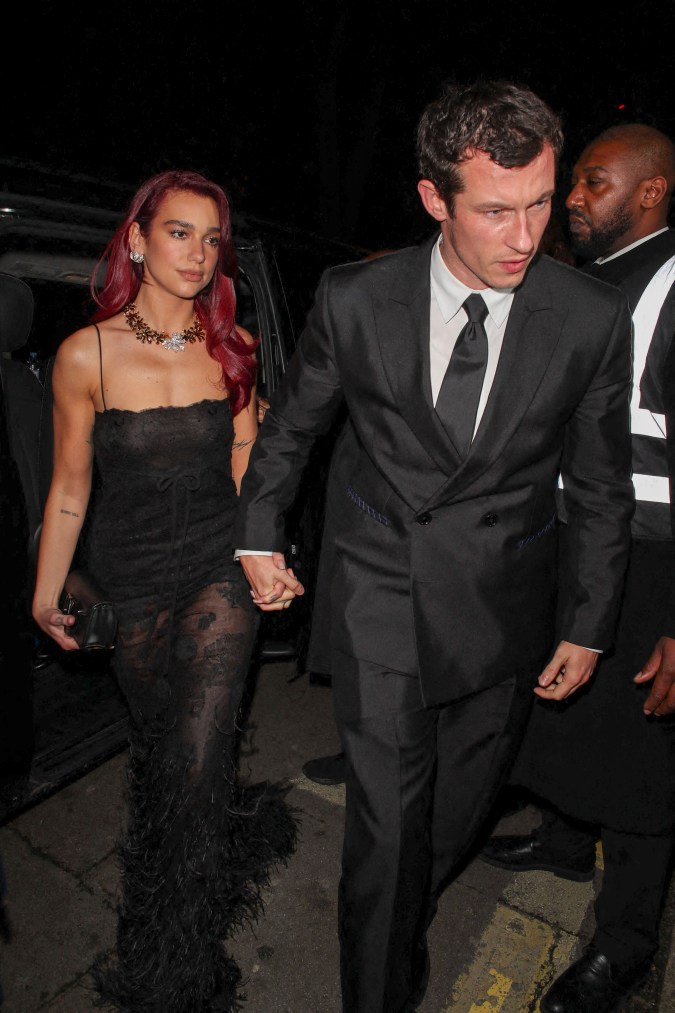 Dua Lipa y Callum Turner fueron fotografiada por los paparazzi saliendo del evento tomados de la mano