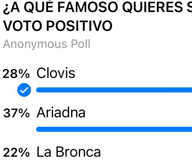 Una vez Aleska salió de la nominación los fans parecen haberse volcado en apoyo hacía La Bronca. Por ejemplo, una de las encuestas que cuenta con casi 45 mil votos emitidos, le están dando votos a la locutora que arrojan un 22 % por ciento de apoyo, y Cristina se ha quedado sólo con un 13 % por ciento, lo que podría significar su salida del reality hoy por la noche.