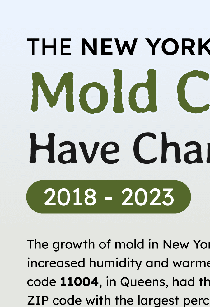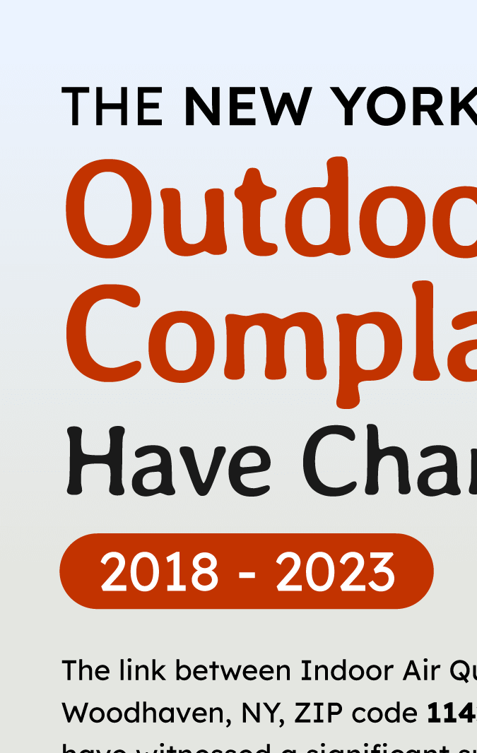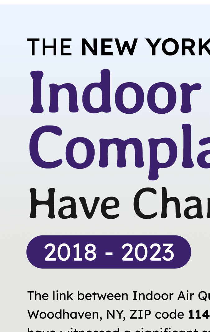 2 áreas de códigos postales han experimentado un aumento significativo en las quejas sobre la calidad del aire interior. Las quejas en Woodhaven (ZIP 11421) aumentaron un 4100%, mientras que en Middle Village (11379) aumentaron un 1480%. Curiosamente, Woodhaven está cerca del vecindario de Ozone Park, cuyo nombre se originó antes de comprender completamente el gas ozono, asociándolo con aire fresco y saludable. Sin embargo, el ozono, como gas, tiene un olor similar al de la lejía.