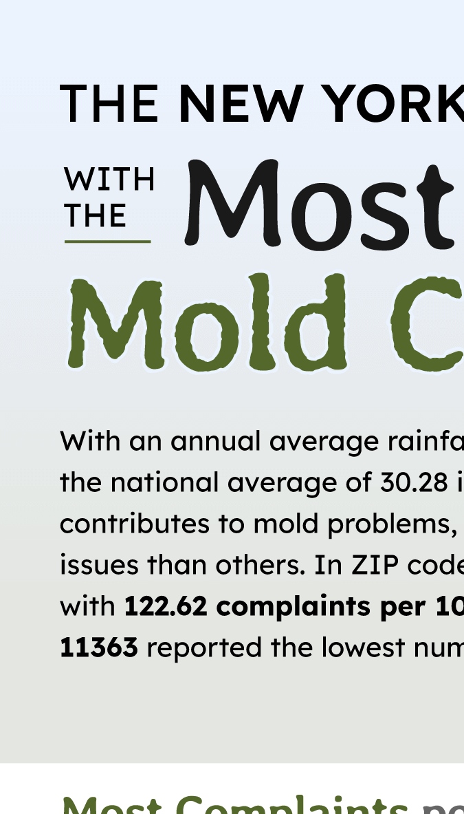 Los códigos postales más destacados por los informes de moho son el 10030 en Harlem, Manhattan, y el 10474 en Hunts Point, Bronx. Estos datos resaltan las disparidades en la distribución del moho en la ciudad y la necesidad de abordar de manera urgente este problema de salud ambiental.