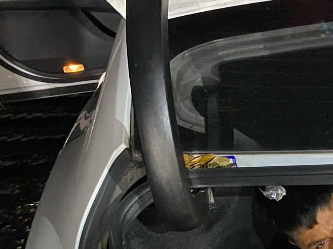 Mientras, el oficial le pidió a los hombres que bajaran del vehículo y al disponerse a revisar todo, descubrió que dos hombres más iban escondidos en la cajuela o porta equipajes del Toyota Camry.