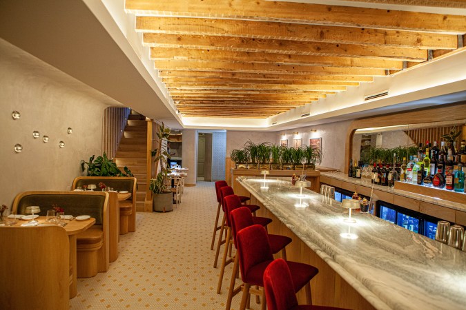 El espacio de 3,600 pies cuadrados abarca dos pisos y transporta a los invitados a la costa italiana mientras incorpora el clásico estilo grandioso de Roma. El bar está inspirado en los veranos italianos, con mármol blanco, verde y dorado de Vermont. Mientras que en el segundo piso destaca el color rojos que recuerda los palacios opulentos que dominan la costa de Amalfi.