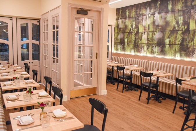 El espacio de 1,700 pies cuadrados refleja la cultura mexicana contemporánea, con los colores y la arquitectura del paisaje urbano de la Ciudad de México. El bar está enmarcado por arcos, similares a los vistos en haciendas tradicionales y ocupa un lugar central, anclando el espacio como el jardín interno de una hacienda.