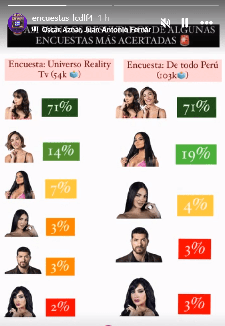 Las encuestas que hacen en grupos de fans sobre ‘La Casa de los Famosos’ son una oportunidad para medir las fuerzas de las votaciones y prever quién podría ser el eliminado de la gala del lunes.
