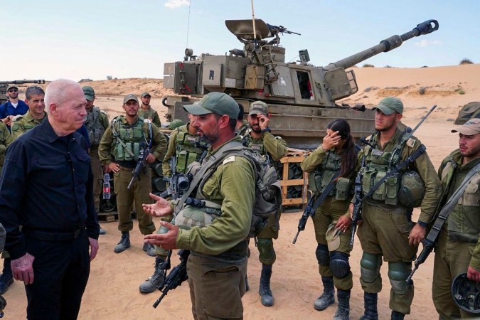 El ministro de Defensa israelí, Yoav Gallan, con tropas en la frontera con Gaza Crédito: Ministerio De Defensa De Israel | EFE