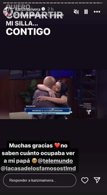 Luego de entrar a 'La Casa de los Famosos 4' para ver a su padre Lupillo, su hija, Karizma Rivera, lanzó un mensaje en su cuenta en Instagram