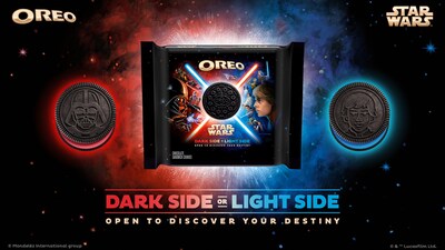Este nuevo producto está diseñado para que cuando los fanáticos abran sus paquetes y descubran su destino, serán recibidos con galletas Oreo de Star Wars del lado oscuro o del lado luminoso con crema roja o azul, según un comunicado.