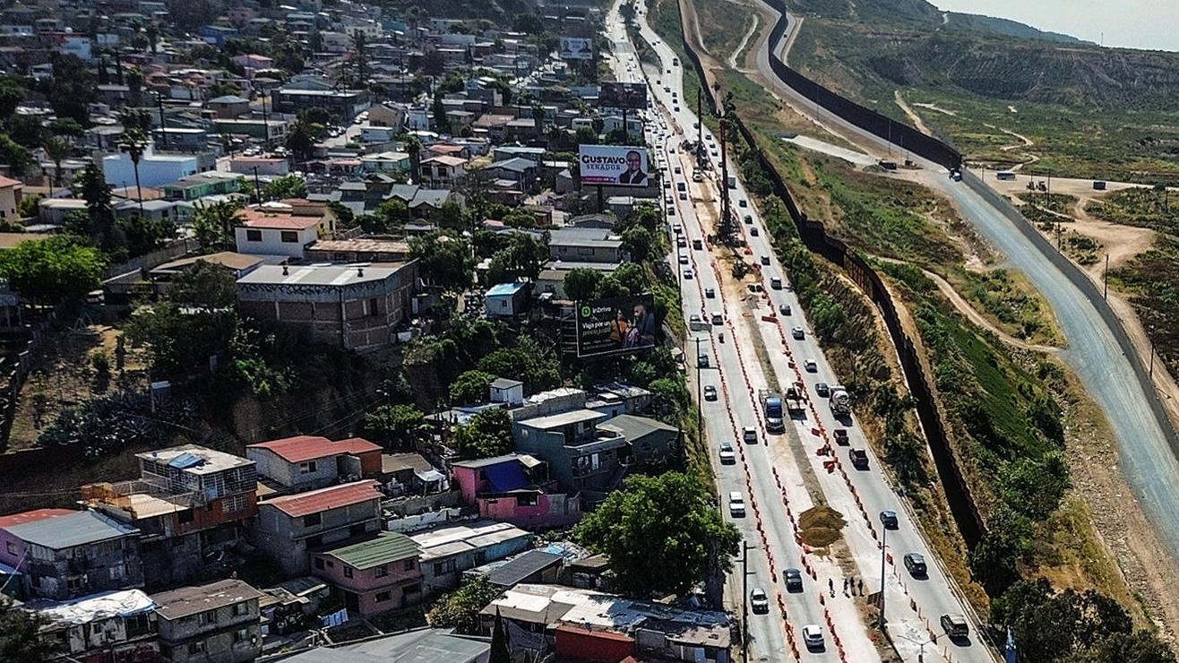 Fotografía aérea que muestra el muro fronterizo de México hacia Estados Unidos, este martes en Tijuana (México). Crédito: Joebeth Terriquez | EFE