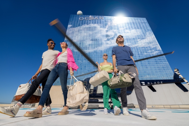 Ocean se ha asociado con BLADE para que los huéspedes puedan reservar un vuelo exclusivo en helicóptero de 6 pasajeros desde Nueva York hasta el helipuerto ubicado en el techo de su garaje de clientes; donde se le brindará una experiencia única y personalizada de llegada, con servicio de conserjería dedicado y una garantía de mejora gratuita de suite para cualquier pasajero que reserve una habitación en Ocean.