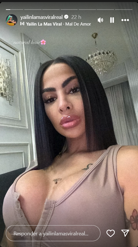 La cantante dominicana Yailin La Más Viral subió a sus historias en Instagram una fotografía en la que se le vio con su cabello al natural, como pocas veces lo muestra, debido a que generalmente usa pelucas con las que se muestra exuberante.