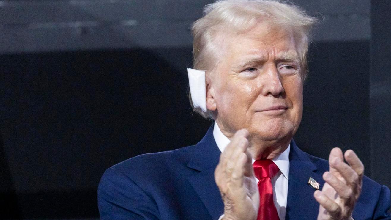 Trump hace primera aparición pública con vendaje en la oreja tras ataque en Pensilvania