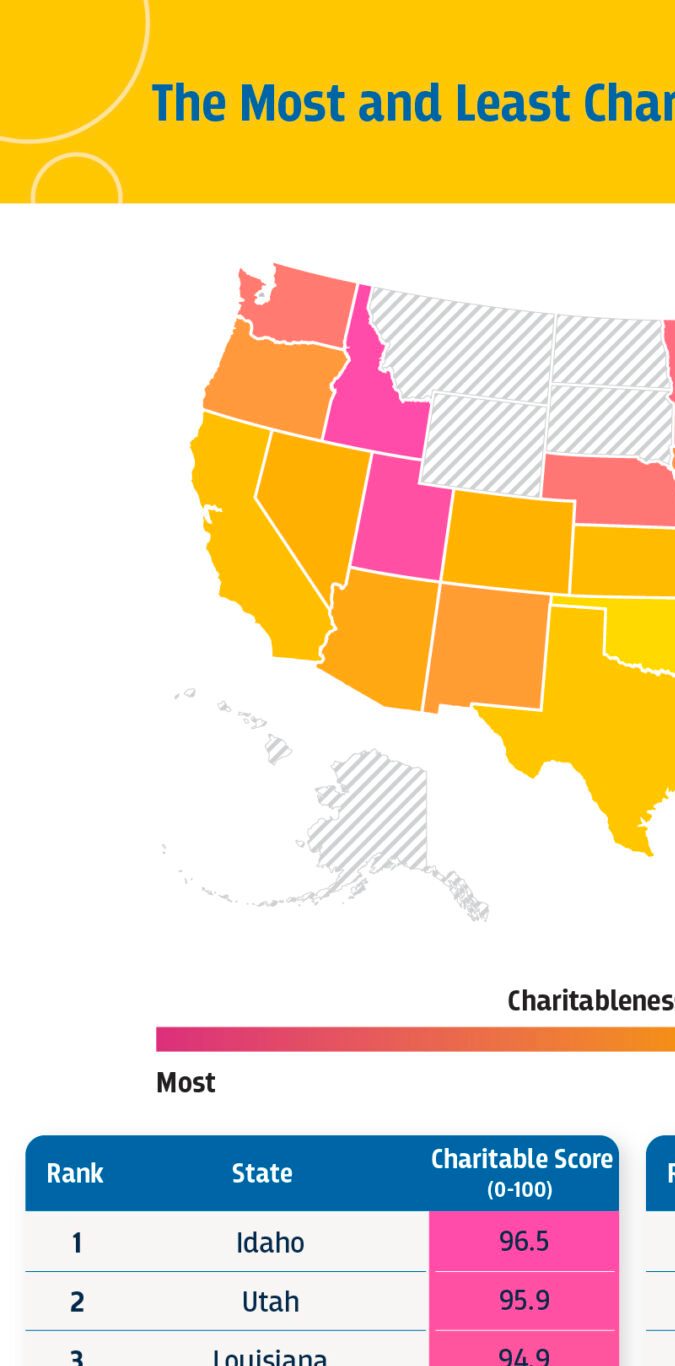 · Idaho, Utah y Luisiana son los estados más caritativos en 2024.