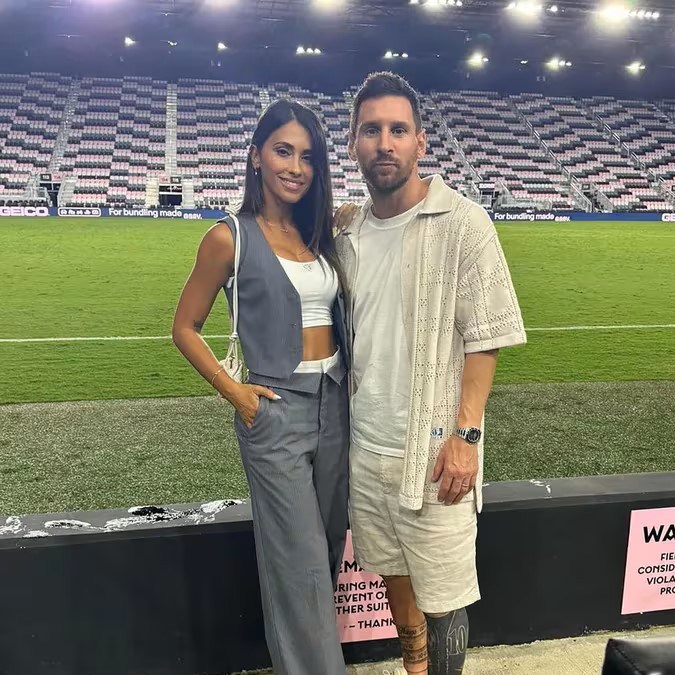 En su cuenta en la red social Instagram, el capitán de la selección argentina publicó una fotografía junto a su esposa Antonela Roccuzzo en el Chase Stadium.