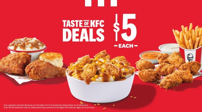 KFC está lanzando nuevas ofertas de $5 dólares en su menú “Taste of KFC”, para ofrecer un precio que sea asequible para los consumidores. Las ofertas incluyen: