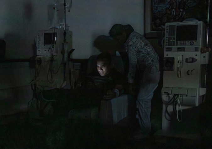 Un paciente espera durante un apagón al interior del Centro de Diálisis de Occidente en Maracaibo, estado Zulia. Foto Henry Chirinos / EFE