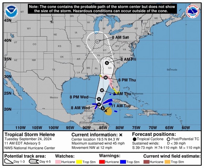• Tormenta tropical Helene podría llegar a costas de Florida como huracán