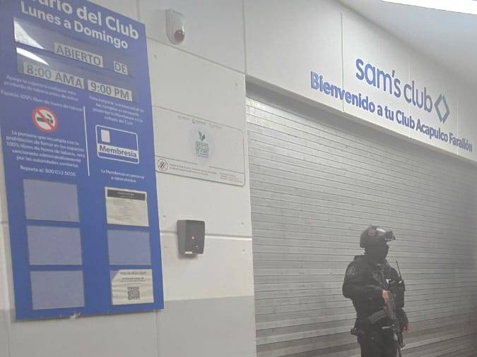 Se reforzó la vigilancia en establecimientos como Sam's Club, donde algunos intentaron saquear mercancías. Crédito: @SSPGro | Cortesía